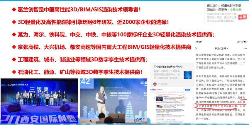 焦点产物:葛兰岱尔WebGL轻量化引擎、模子格局转换器、葛兰创智3D数字资本办理平台、等多款软件著做权。成立于2007年。次要为智能制制、工程建建、聪慧城市/聪慧园区等范畴供给焦点手艺支持。